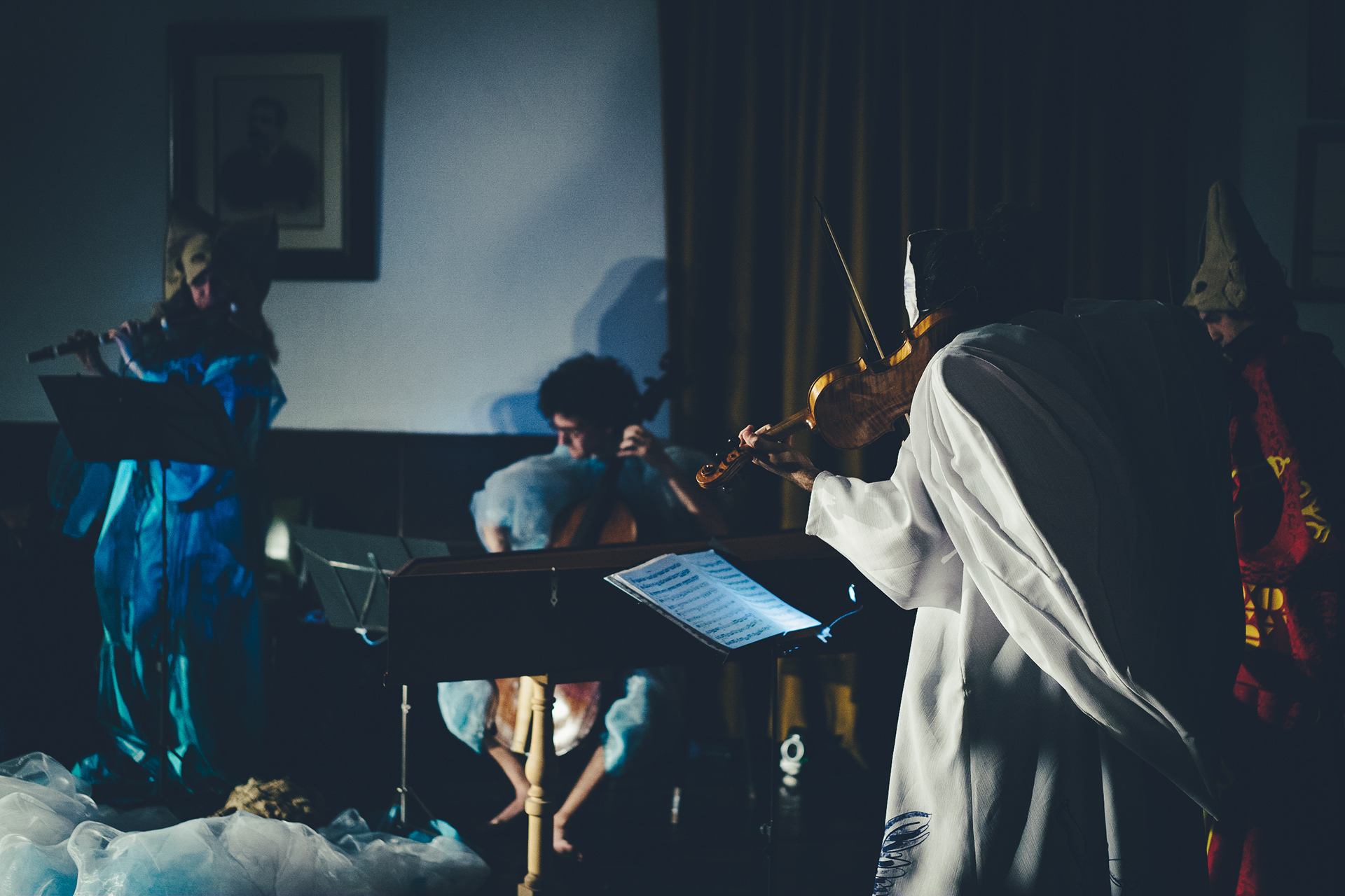 É um dueto entre a música e a cena que pretende caricaturar, por tratamento grotesco, esta dicotomia, anotando os prejuízos da massificação do turismo na identidade local, enquanto reflecte, com humor e sátira, sobre o universo da Música Antiga/Erudita em contraste com o da Música Tradicional."